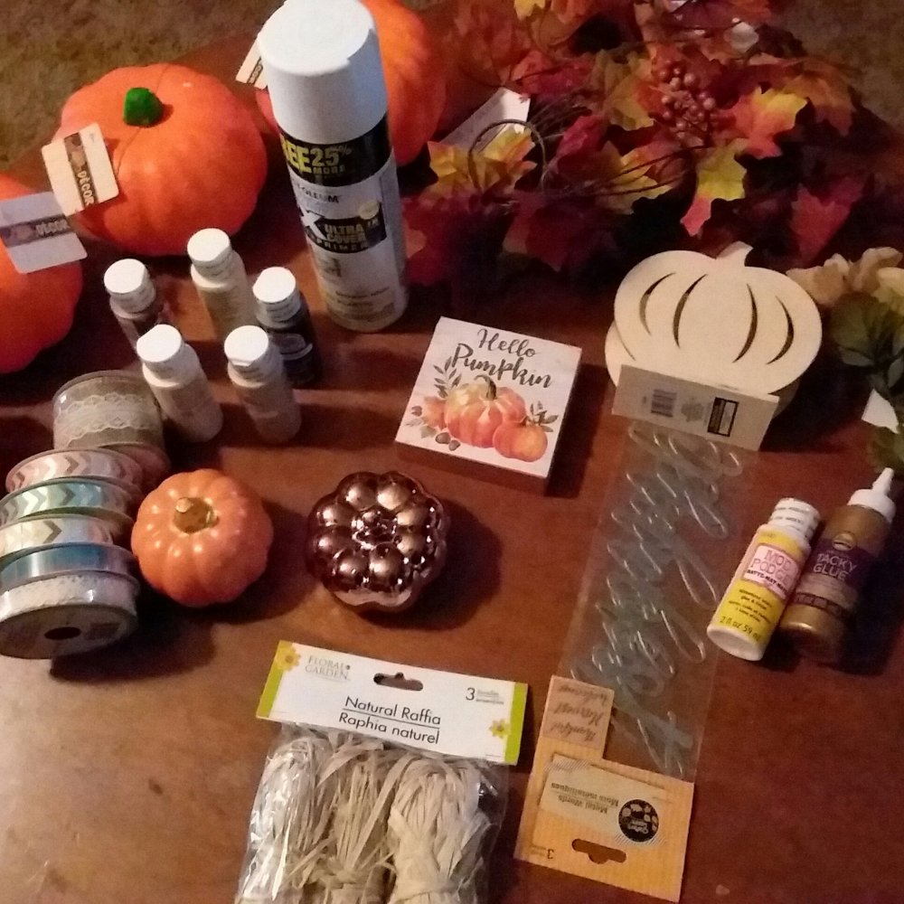 This is the first haul I have done this year. A couple of stores later and my entire table is full of decorating stuff. I could not pass up the Styrofoam pumpkins or the leaves. The cute metal letters will be placed on some wood from pallet wood that I stained. And the cute pumpkin sign will look great on my computer table.